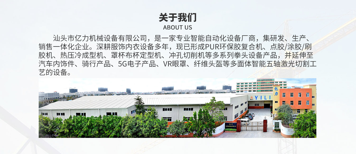 •   汕頭市億力機(jī)械設(shè)備有限公司是一家集研發(fā)、生產(chǎn)銷(xiāo)售于一體的專(zhuān)業(yè)性面料貼合機(jī)械、胸圍模杯機(jī)械、無(wú)縫工藝鞋面機(jī)械、口罩生產(chǎn)線(xiàn)和焊耳帶機(jī)械企業(yè)。